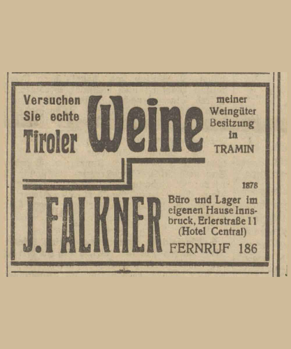 Die Weinhändler Josef und Antonia Falkner kaufen 1919 das Café Central, wo sie einen Handelsstützpunkt für den Absatz von Wein einrichten. Zwei Jahre später verkauft Josef Falkner seine Anteile an seine Frau und die Alleinbesitzerin vermietet die Räumlichkeiten an die Wiener Kommerzbank, was Innsbruck Kaffeehausbesucher sehr traurig stimmt. Doch als 1927 Josef Falkner wieder zum Miteigentümer des Central wird, wendet sich das Blatt und am 14. Mai 1928 feiert das Café Central seine große Wiedereröffnung.